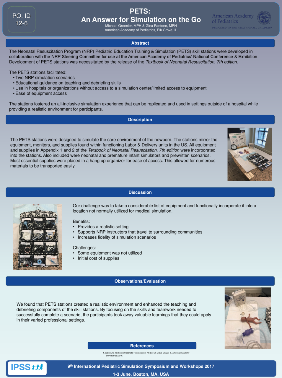 Neonatal Resuscitation, 7th edition. The PETS stations focused on two simulation scenarios and provided educational