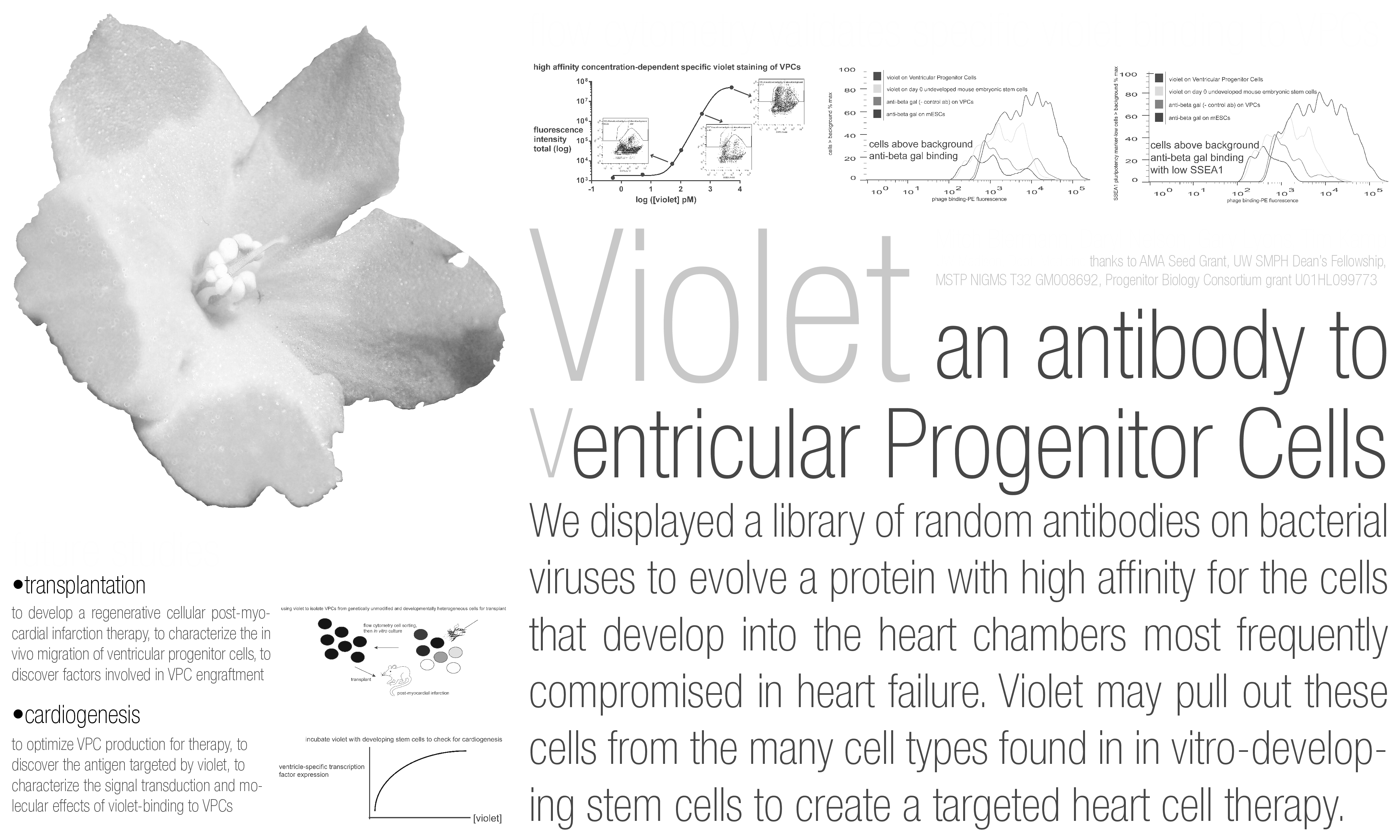 We have created a monoclonal antibody that specifically binds ventricular progenitor cells, the developmental parent cells of the myocardium most commonly damaged in heart disease. We will use it to obtain VPCs from unmodified developing stem cells for transplant.