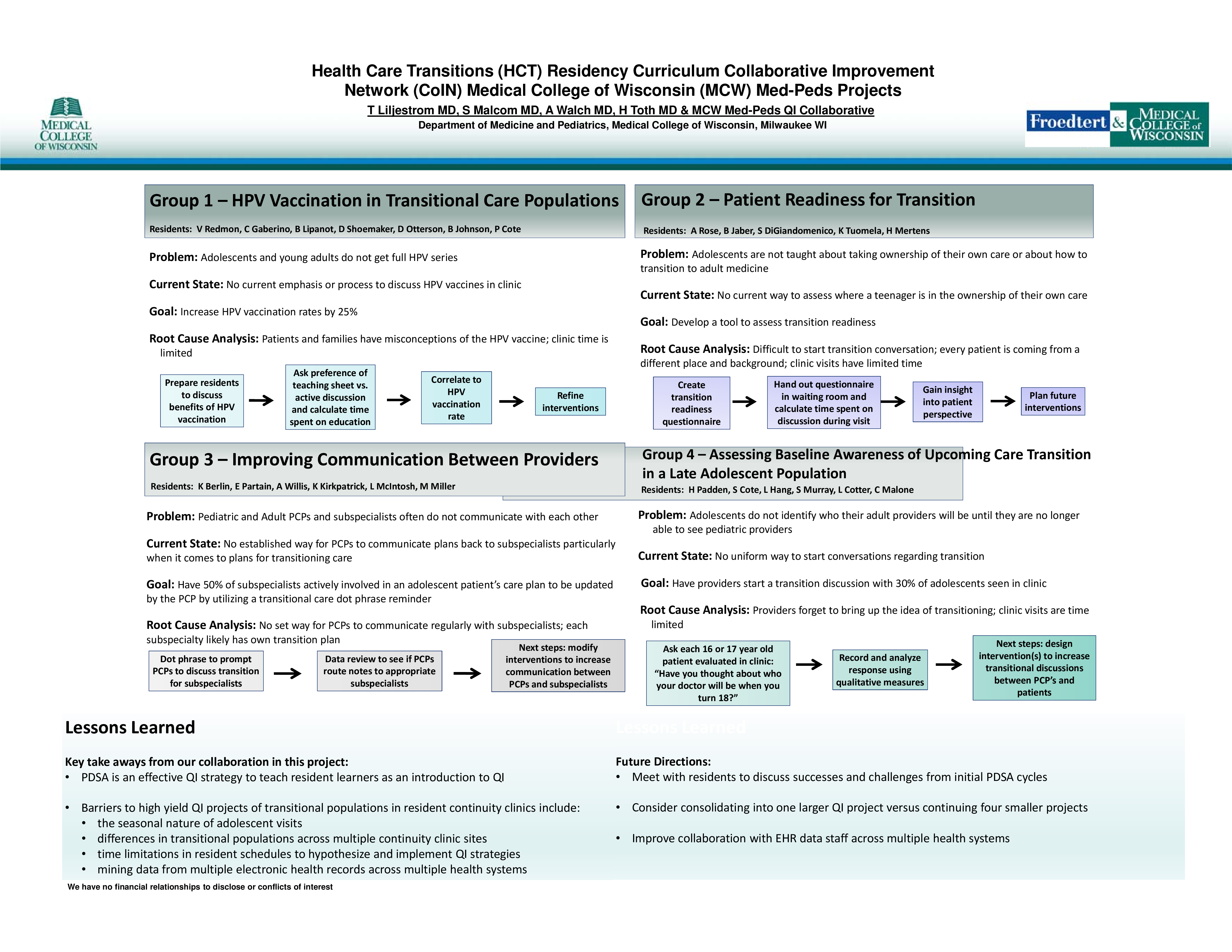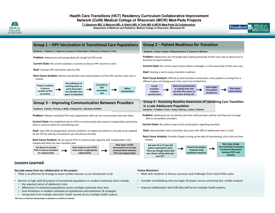Health Care Transitions (HCT) Residency Curriculum Collaborative Improvement Network (CoIN) Medical College of Wisconsin (MCW) Med-Peds Projects