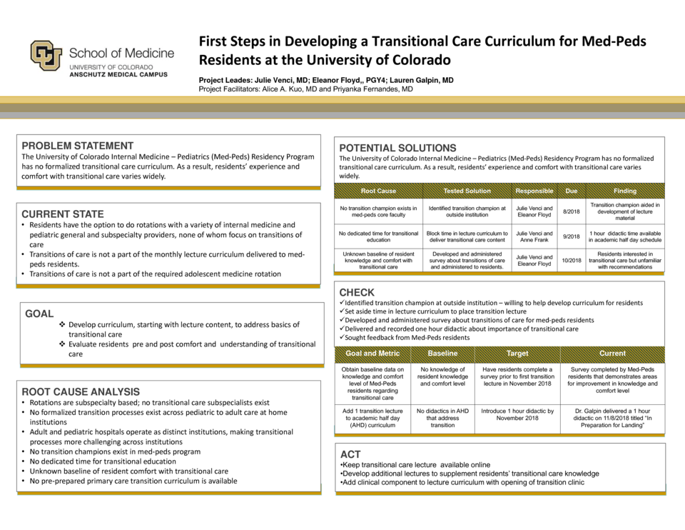 First Steps in Developing a Transitional Care Curriculum for Med-Peds Residents at the University of Colorado