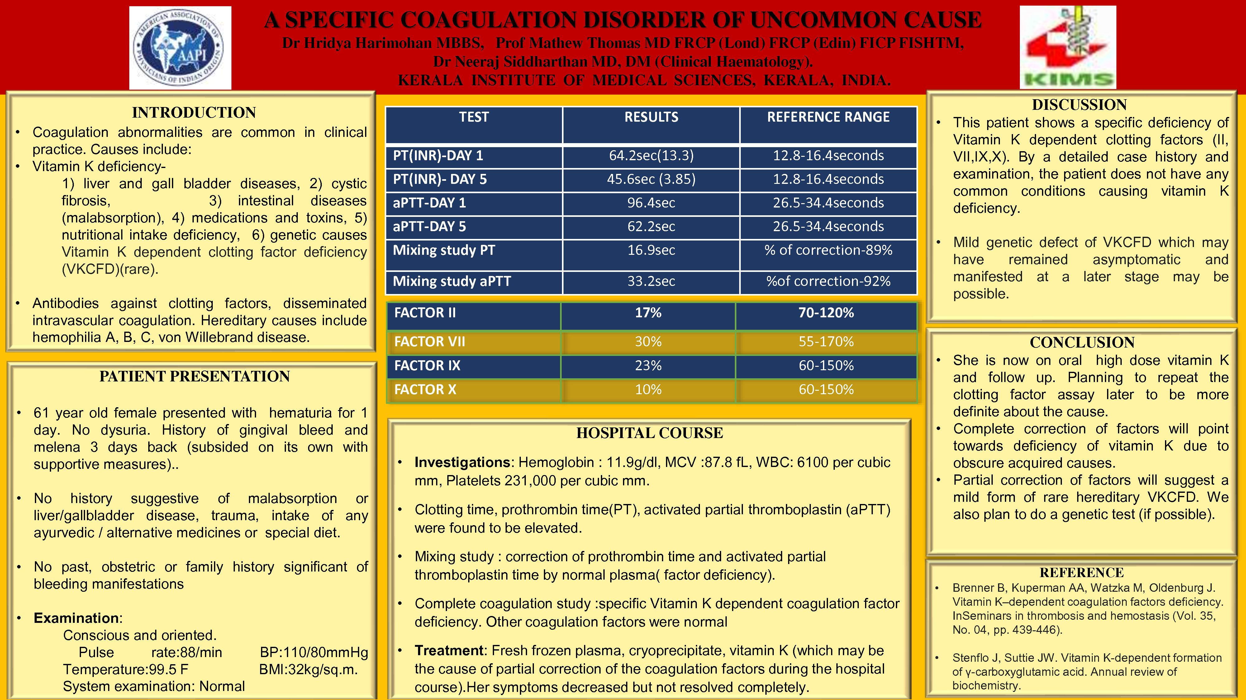 • Partial correction of clotting factors will suggest a mild form of rare hereditary VKCFD. We also plan to do a genetic test in the future (if possible).