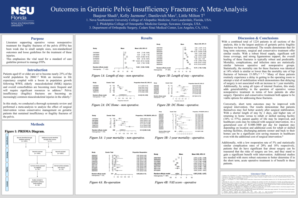 Discussion: With a combined total of 1224 patients in all sections of the analysis, this is the largest analysis of geriatric pelvic fragility fractures we have encountered. This study found that patients with fragility fractures of the pelvis do well after both operative and non-operative management.