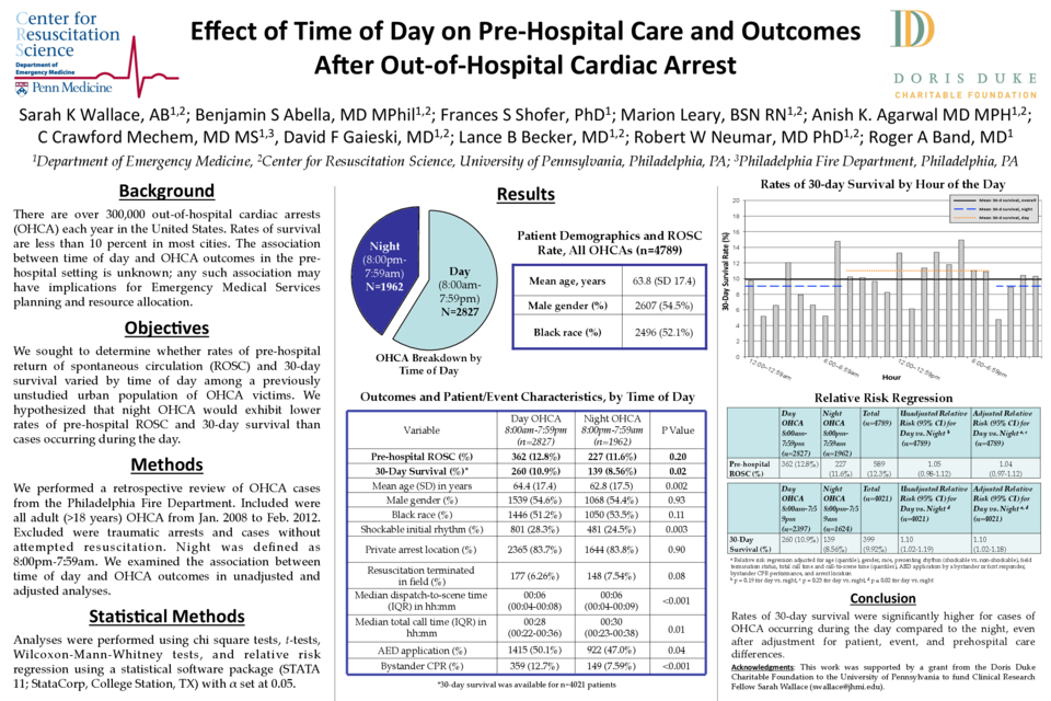 Conclusions: Rates of 30-day survival were significantly higher for cases of OHCA occurring during the day compared to the night, even after adjustment for patient, event, and pre-hospital care differences.