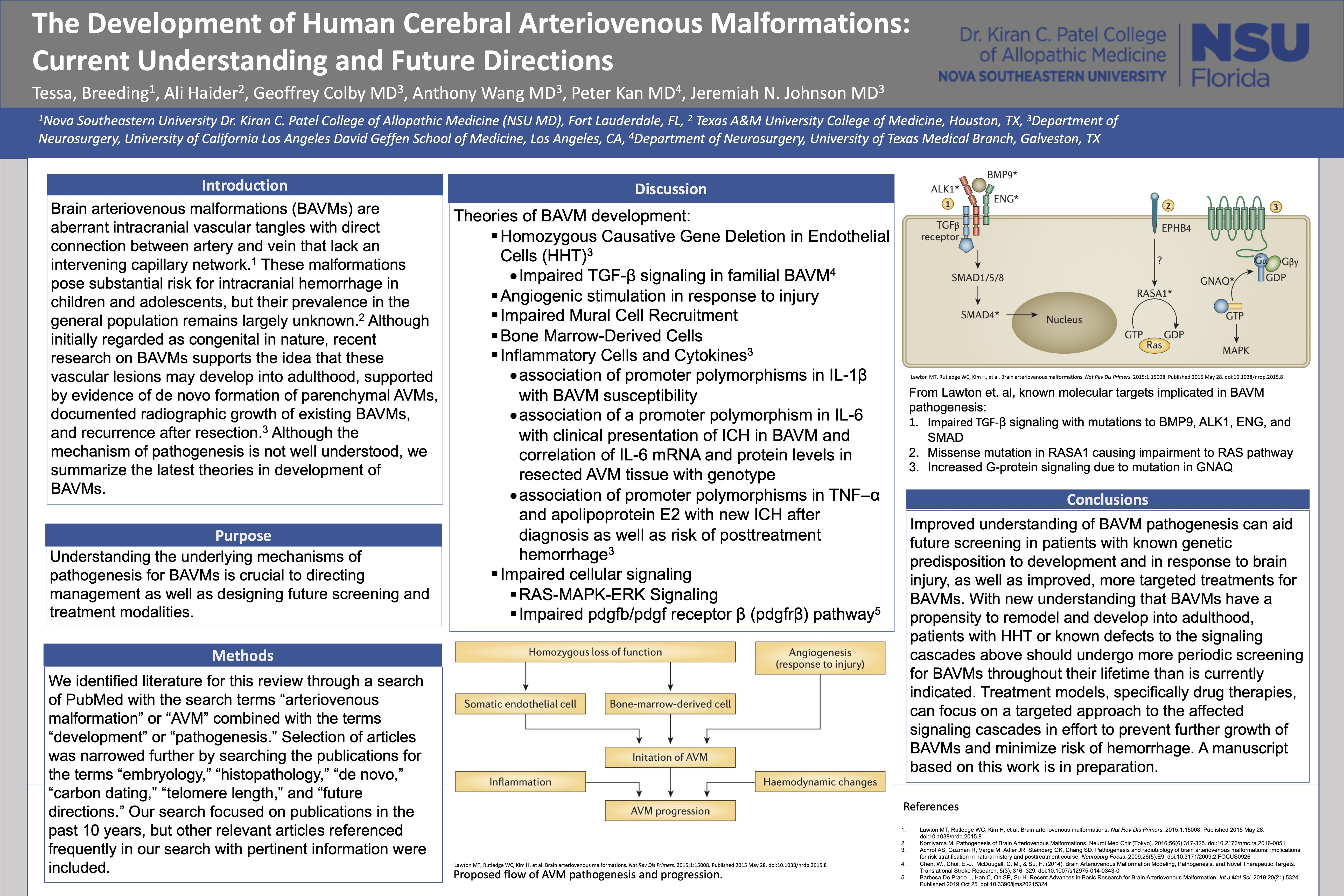 Outcomes: Evidence supports that BAVMs are not solely congenital by demonstrating de novo formation of parenchymal AVMs, documented radiographic growth of existing BAVMs, and recurrence after resection. Current theories for BAVM development implicate congenital malformations, genetic polymorphisms, angiogenic stimulation in response to injury, and impairment to various inflammatory cells and molecular signaling pathways.