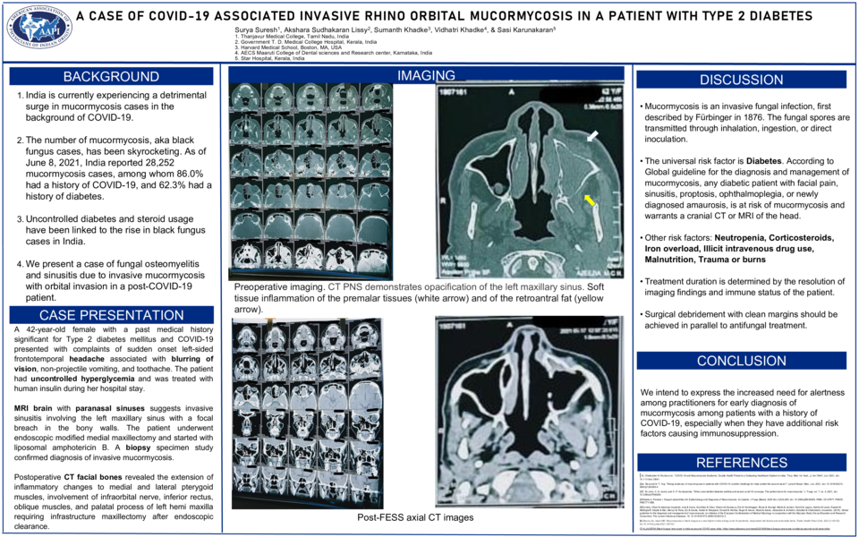 India is currently experiencing a detrimental surge in mucormycosis cases in the background of COVID-19. We present a case of fungal osteomyelitis and sinusitis due to invasive mucormycosis with orbital invasion in a post-COVID-19 patient.