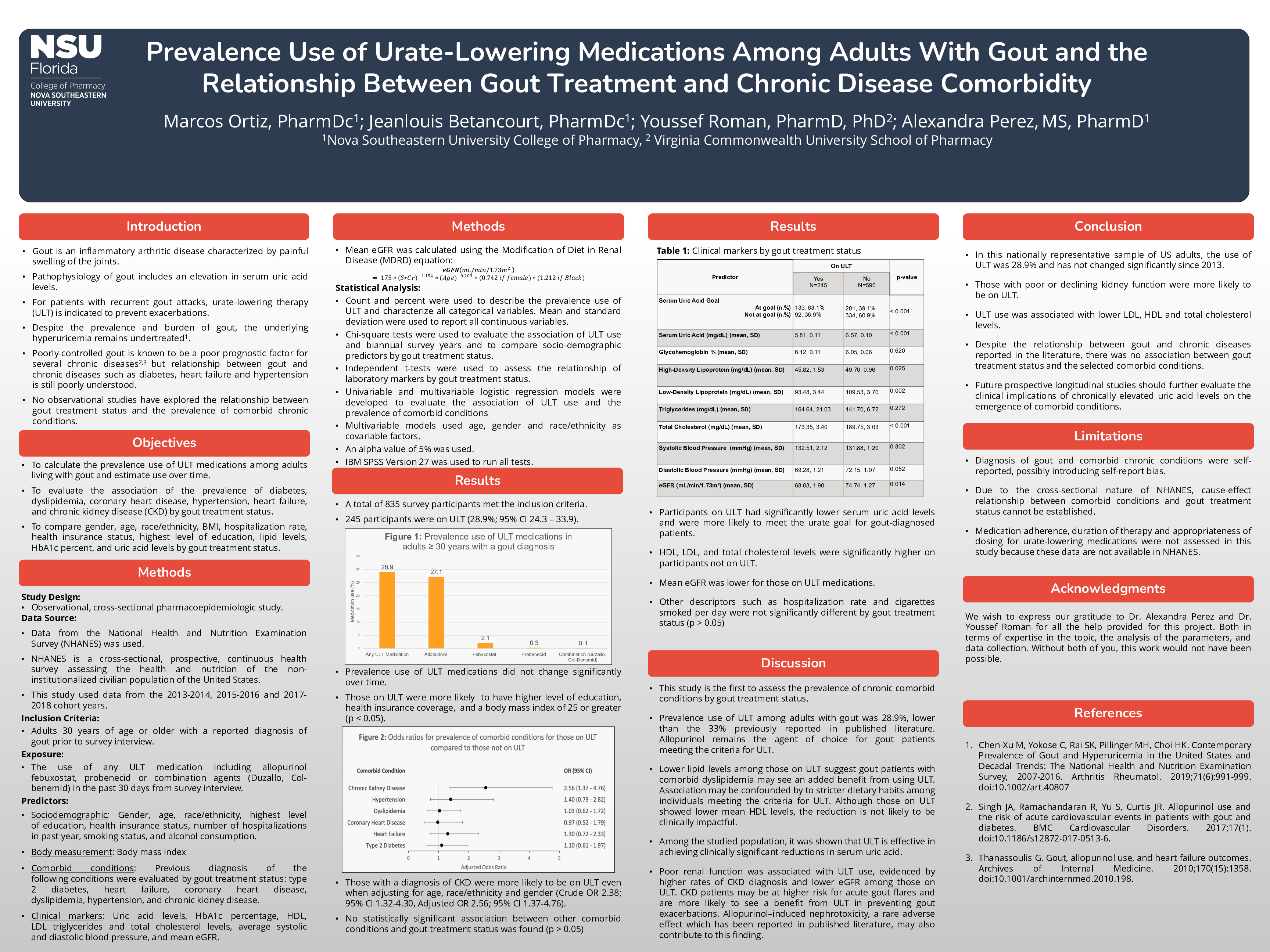 Purpose: The objectives of this study were to estimate the prevalence use of urate-lowering therapy among adults with gout and evaluate the association of the prevalence of comorbid conditions by gout treatment status.