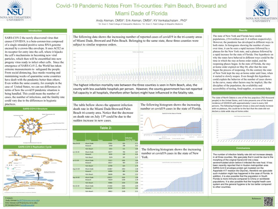 Background. While Florida deals with hurricane season this time around, we are dealing with the RNA genome, protein enveloped, monster SARS-CoV-2. The Covid-19 situation in Palm Beach, Broward, and Miami-Dade Counties accounts ~50% of total cases from the state of Florida, USA. The monster that originated across the continent from Asia has spread all way to Florida, USA, a spanning distance that is way too higher than the seasonal forceful wind the hurricane.