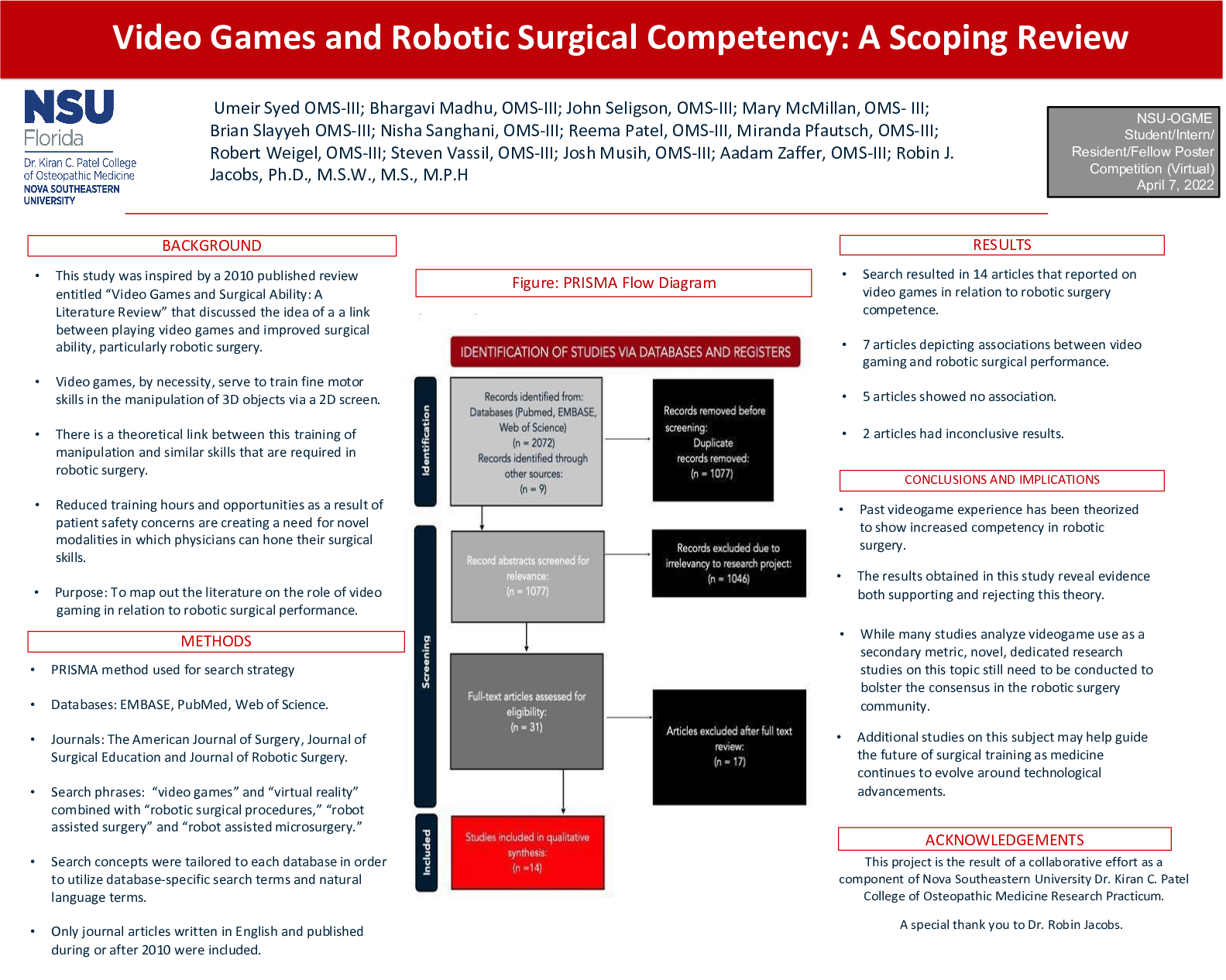 Materials and Methods: Search was conducted in databases (EMBASE, PubMed, Web of Science) and related journals (The American Journal of Surgery, Journal of Surgical Education and Journal of Robotic Surgery). Search concepts included “video games” and “virtual reality” combined with “robotic surgical procedures,” “robot assisted surgery” and “robot assisted microsurgery.” Additionally, search concepts were tailored to each database in order to utilize database-specific search terms and natural language terms. Only journal articles written in English and published during or after 2010 were included.