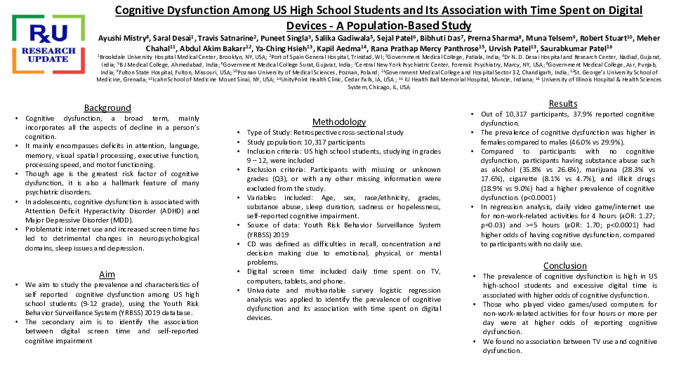 characteristics of cognitive dysfunction among US high school students and its association with time