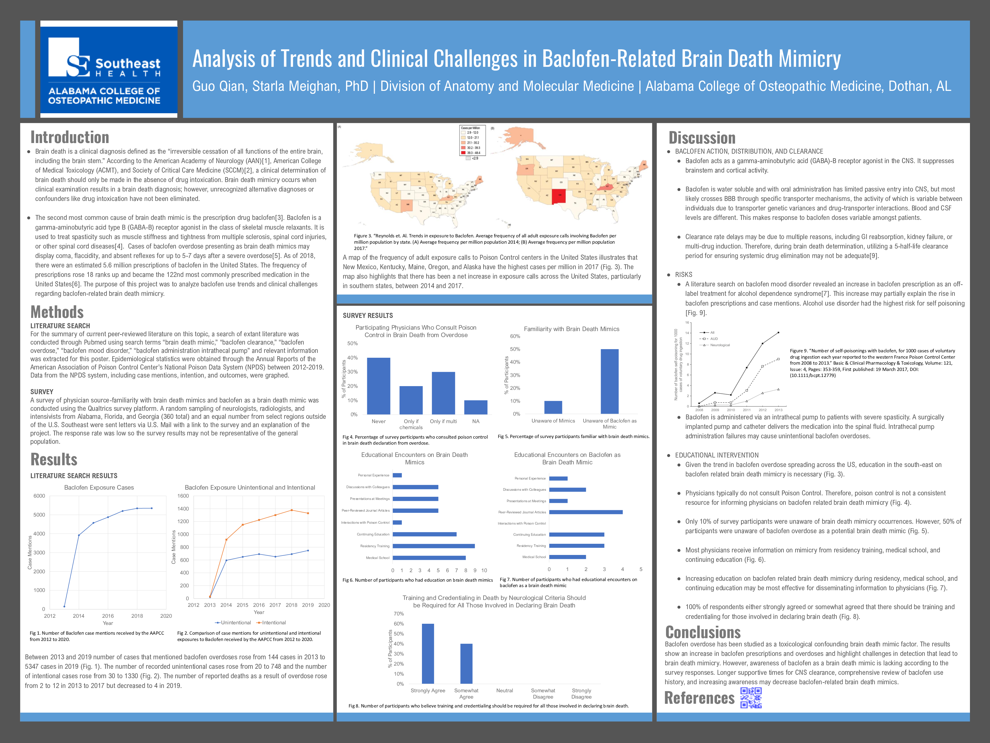 The NPDS reported an increase in baclofen overdose calls to nationwide poison control centers from 144 to 5,347 between 2013 and 2019, respectively. During this period, there was an increase in off-label use of prescribed baclofen to treat alcohol-dependence syndrome. Malfunctioning intrathecal pump or polydrug administration may cause unintentional overdose. Additionally, recent studies indicate five half-lives may be insufficient for estimating complete clearance of baclofen from the central nervous system (CNS). Physician survey data is pending.