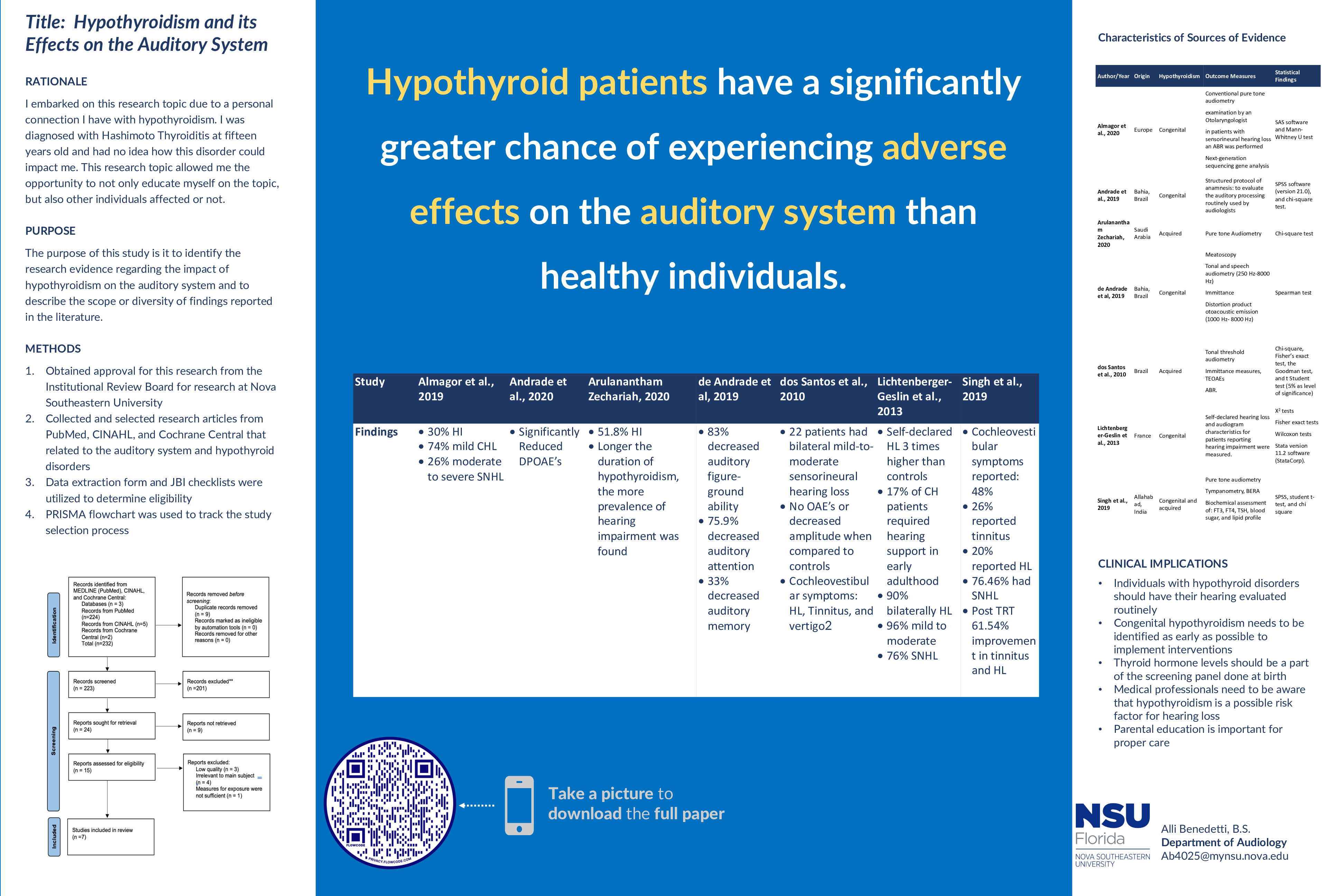 Methods: Submitted a letter of determination and obtained approval for this research from the NSU institutional review board. Research articles that related to the auditory system and hypothyroid disorders were collected from PubMed, CINAHL, and Cochrane Central. A data extraction form and JBI checklists were utilized to determine eligibility. A PRISMA flowchart was created to show why articles were included or excluded.