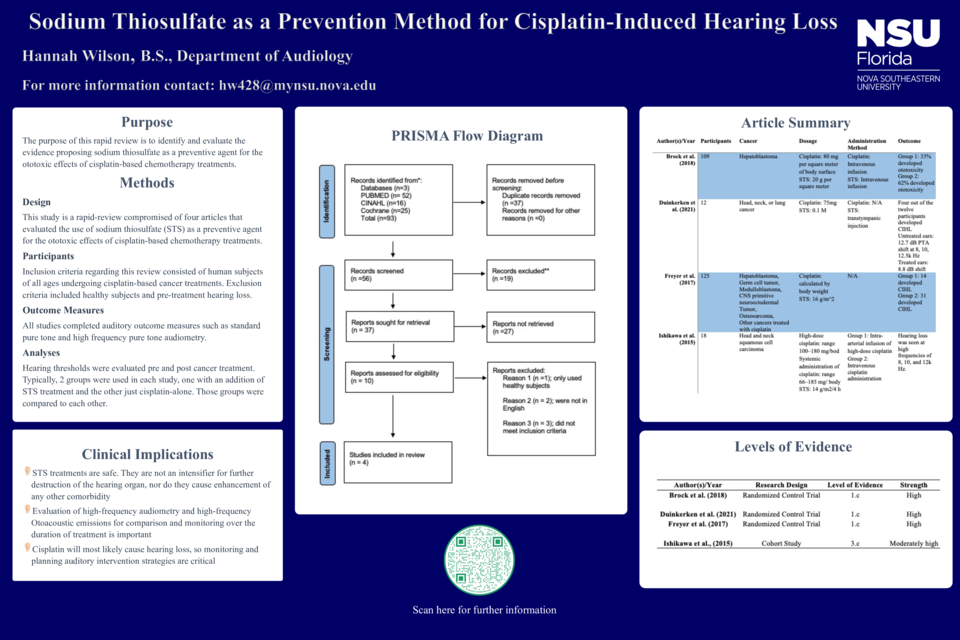 Results: Four articles were chosen to be analyzed in this rapid review. This includes 3 randomized control trials and 1 cohort study. Each of these studies evaluated sodium thiosulfate being administered simultaneously to prevent cisplatin-induced hearing loss.