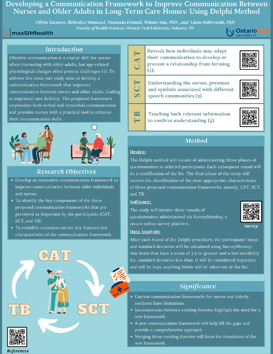 In order to address this issue, the development of a new communication framework will utilize the Delphi method, which consists of three rounds of questionnaires that incorporate three existing theories essential for communicative interactions. Doing this would create a research tool that reduces the gap between each framework and reduces inconsistencies. The theories include communication/accommodation, speech codes, and teach-back theories. The Delphi method is intended to gain insight and opinions on nurse educators, simulation and communication experts that will inform the development of a new communication framework.
