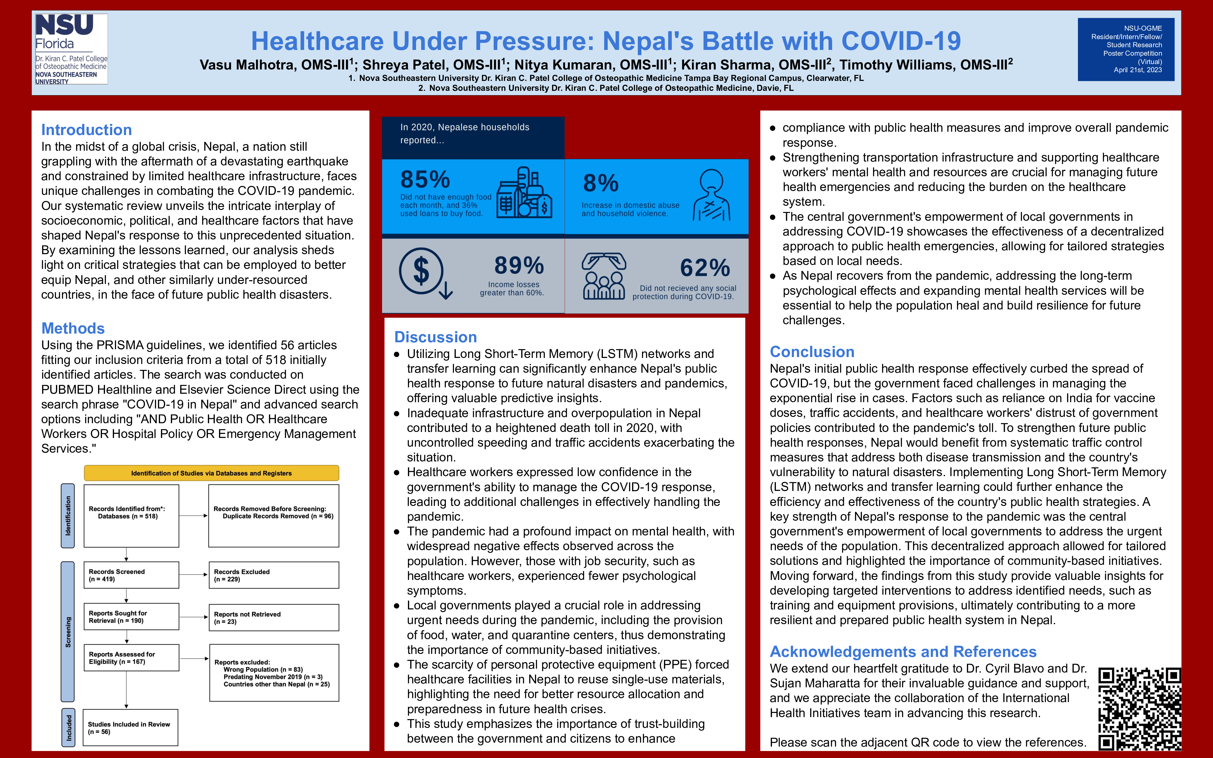 In this study, we explore Nepal's unique challenges and response to the COVID-19 pandemic amidst ongoing recovery from a catastrophic earthquake, limited healthcare infrastructure, and dependency on India for medical supplies. Our systematic literature review, guided by PRISMA, uncovers crucial insights into the country's public health strategies, the role of local governments, and the impact on mental health services, women's health, and cancer care. Findings highlight the potential of Long Short-Term Memory (LSTM) networks and transfer learning for enhancing future public health responses, as well as the importance of strengthening healthcare worker resources, mental health services, and diversifying medical supply sources. By examining Nepal's experience, this study offers valuable lessons for bolstering public health systems worldwide and building resilience against future crises.
