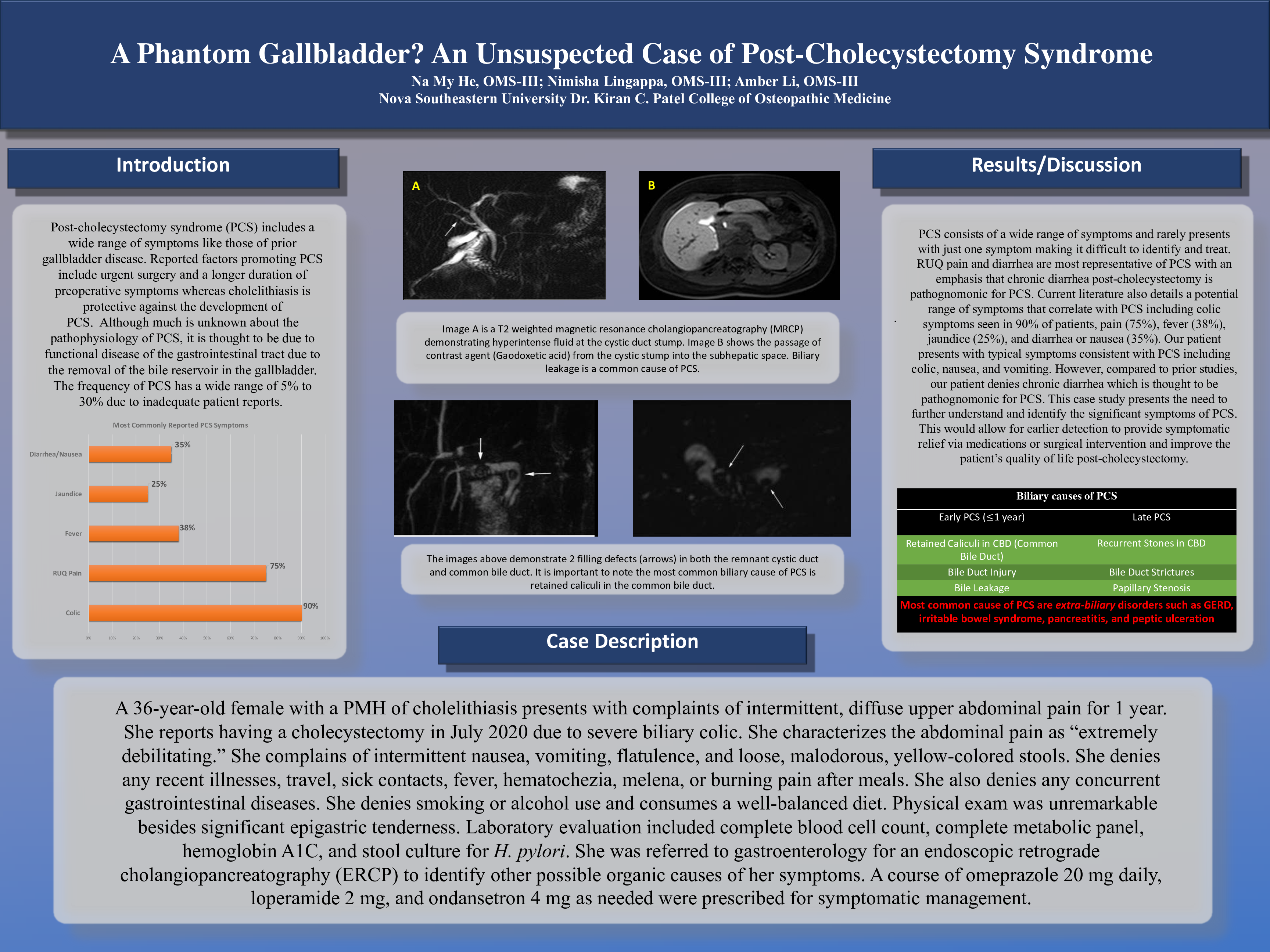 In our case study, our patient presents with atypical symptoms inconsistent with those commonly associated with PCS and denies fever, jaundice, RUQ pain, and diarrhea. Instead, the patient complains of diffuse abdominal pain, intermittent nausea, and loose stools with no past medical history of gastrointestinal disease besides cholelithiasis. Compared to prior studies, this patient denies chronic diarrhea which is thought to be pathognomonic for severe PCS pain. This case study presents the need to further understand and identify the significant symptoms of PCS for earlier detection to provide symptomatic relief via medications or surgical intervention to improve the patient’s quality of life post-cholecystectomy.