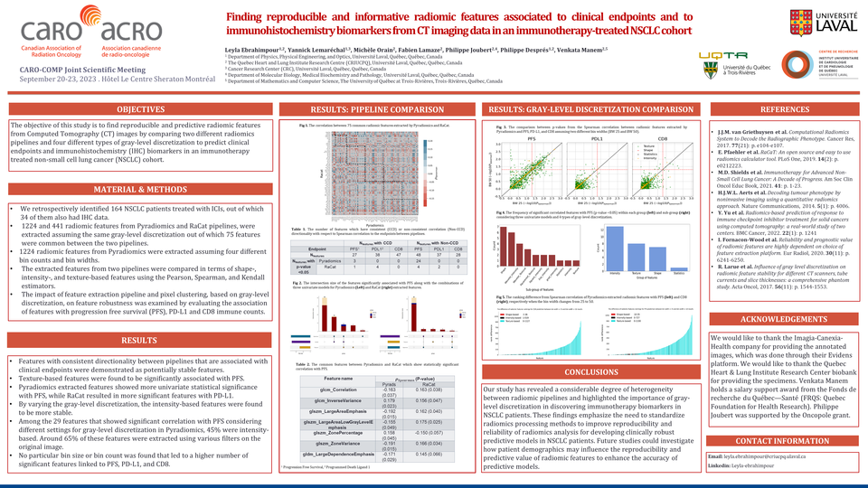The objective of this study is to find reproducible and predictive radiomic features from Computed Tomography (CT) images that are correlated to clinical endpoints and immunohistochemistry (IHC) biomarkers in an immunotherapy treated non-small cell lung cancer (NSCLC) cohort.