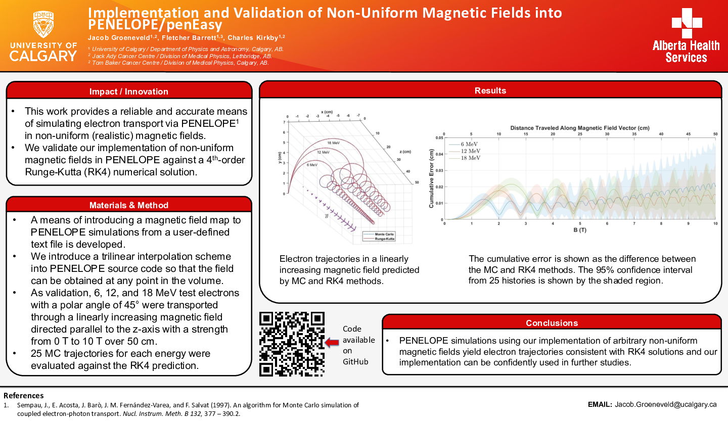 PENELOPE simulations using non-uniform magnetic fields were consistent with the trajectories of electrons simulated with RK4 techniques. We can now introduce a non-uniform magnetic field into further studies involving PENELOPE.