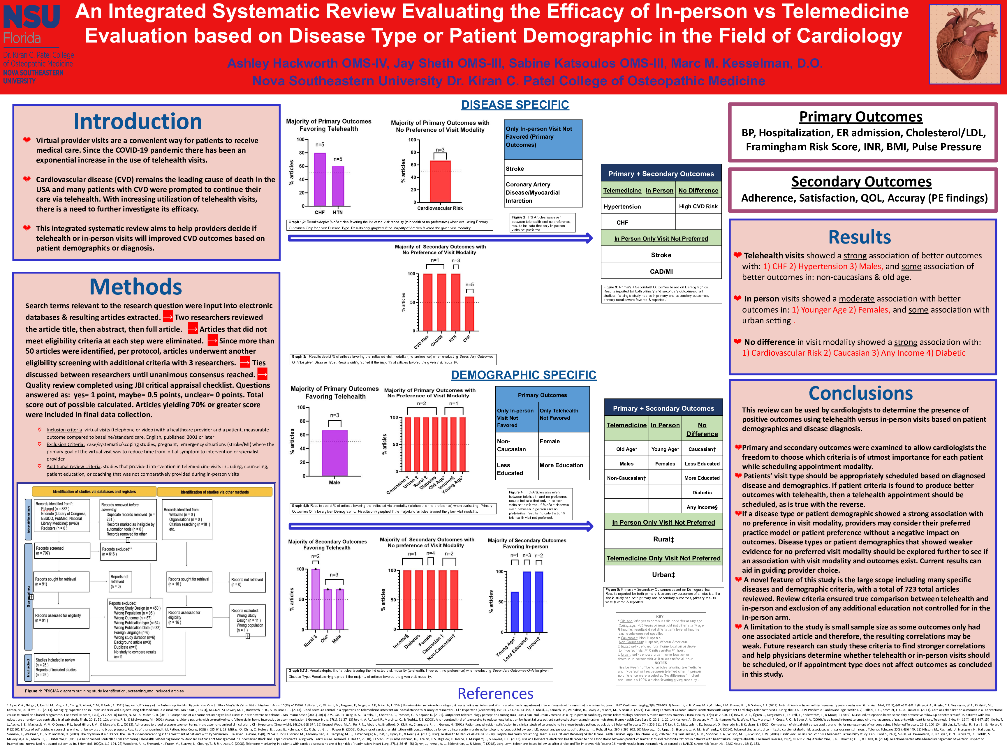 Objective : To determine if cardiovascular outcomes improved more with in-person provider visit, a telemedicine visit (virtual), or either visit type based on cardiovascular disease types, risk factors, intervention, or patient demographics.