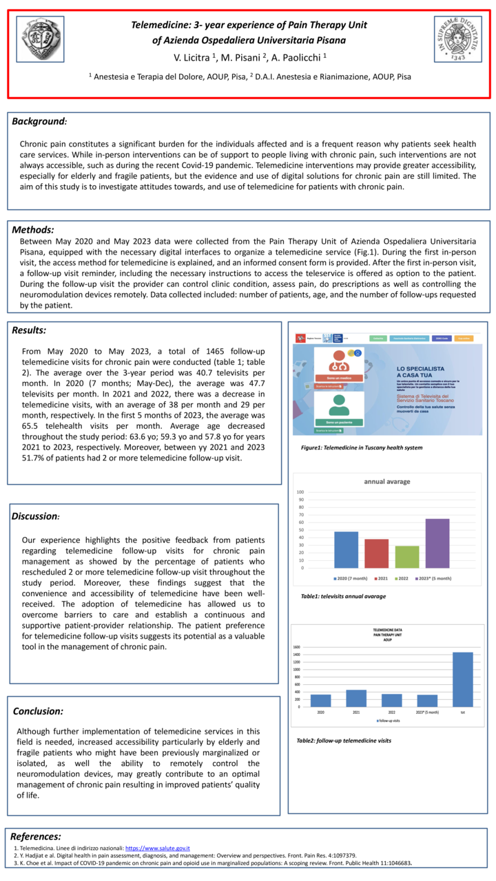 Telemedicine for the follow-up in chronic pain: 3- year experience of Pain Therapy Unit at Pisa Hospital