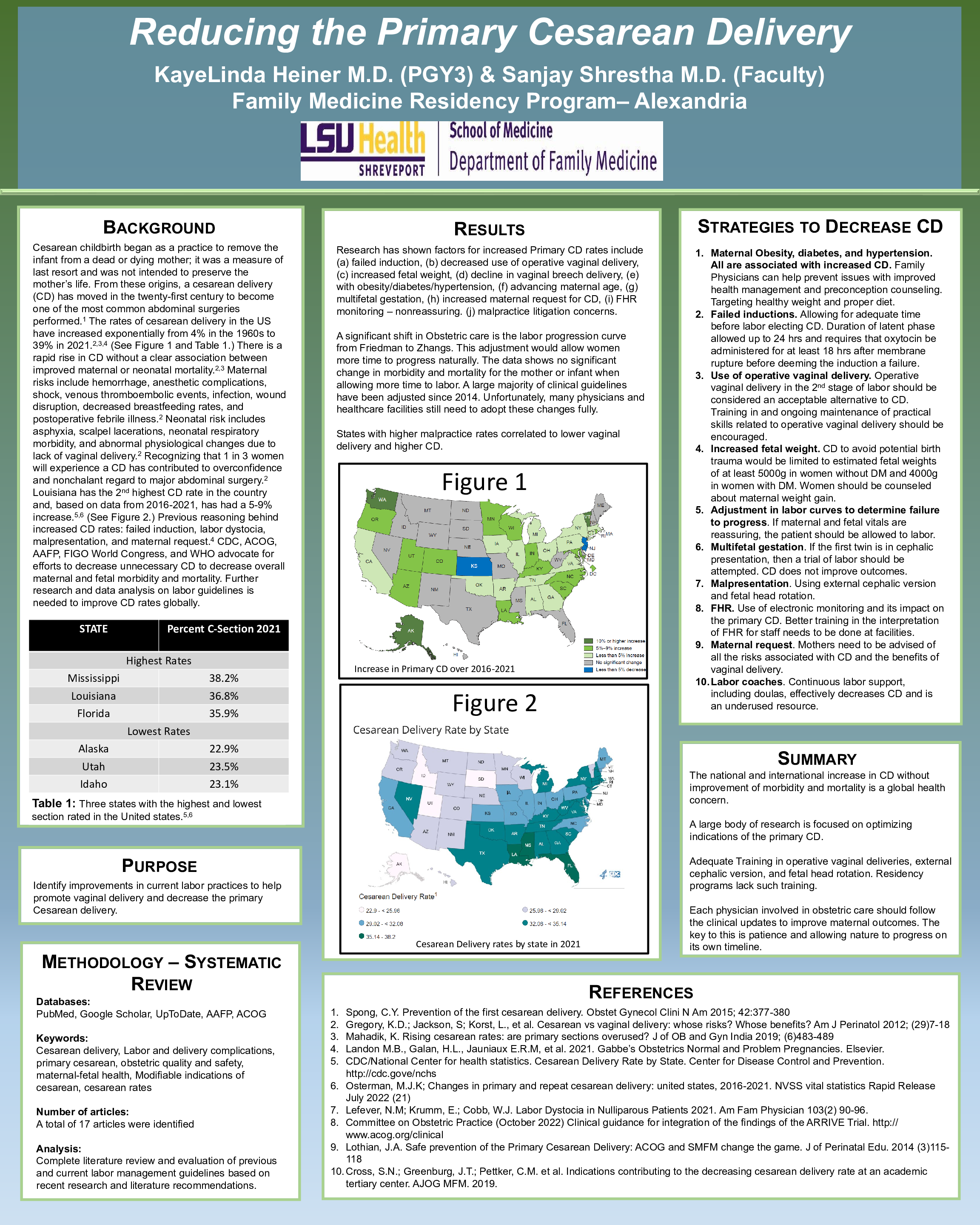 The national and international increase in CD without improvement of morbidity and mortality is a global health concern. A large body of research is focused on optimizing indications of the primary CD. Adequate Training in operative vaginal deliveries, external cephalic version, and fetal head rotation. Residency programs lack such training. Each physician involved in obstetric care should follow the clinical updates to improve maternal outcomes. The key to this is patience and allowing nature to progress on its own timeline.