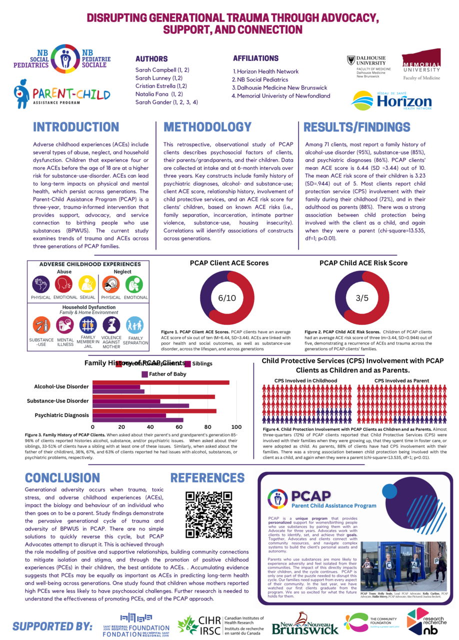 Generational adversity occurs when trauma, toxic stress, and adverse childhood experiences (ACEs), impact the biology and behaviour of an individual who then goes on to be a parent. Study findings demonstrate the pervasive generational cycle of trauma and adversity of BPWUS in PCAP. There are no simple solutions to quickly reverse this cycle, but PCAP Advocates attempt to disrupt it. This is achieved through the role modelling of positive and supportive relationships, building community connections to mitigate isolation and stigma, and through the promotion of positive childhood experiences (PCEs) in their children, the best antidote to ACEs. . Accumulating evidence suggests that PCEs may be equally as important as ACEs in predicting long-term health and well-being across generations. One study found that children whose mothers reported high PCEs were less likely to have psychosocial challenges. Further research is needed to understand the effectiveness of promoting PCEs, and of the PCAP approach.