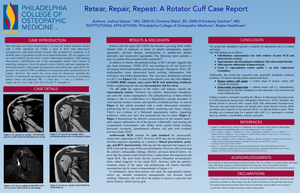 This case report examines a 64-year-old, right-hand dominant female with a history of type 2 diabetes mellitus, prior right rotator cuff repair (RCR), subacromial decompression (SAD), and distal clavicle excision, who presented with right shoulder pain following a ground-level fall. Radiographic findings revealed a full-thickness tear of the supraspinatus tendon, tendinosis, superior humeral head migration, and subacromial osteophyte formation. This report highlights risk factors such as age, diabetes, previous shoulder surgeries, and trauma that can predispose patients to repeat rotator cuff tears (RCT). It discusses the role of subacromial osteophytes and tendinosis in increasing the risk for RCT and explores strategies for managing repeat RCTs. Specifically, it suggests that for patients with active lifestyles who present with significant functional deficits, combining surgical interventions such as SAD and repeat RCR should be considered. This surgical approach can directly address tendon impingement, restore tendon function, and alleviate bursal-associated pain. However, this case also raises questions about the efficacy of SAD in preventing repeat rotator cuff pathology, underscoring the need for further research into its long-term benefits and emphasizing the importance of exploring management options for repeat RCTs.