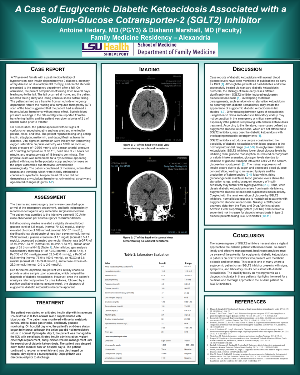 The increasing use of SGLT2 inhibitors necessitates a vigilant approach to the diabetic patient with ketoacidosis. To ensure timely and effective management, healthcare providers must be aware of the potential for euglycemic diabetic ketoacidosis in patients on SGLT2 inhibitors who present with metabolic acidosis and ketonemia. This case is one of many where a euglycemic patient on an SGLT2 inhibitor presents with signs, symptoms, and laboratory results consistent with diabetic ketoacidosis. The inability to rely on hyperglycemia as a diagnostic indicator in these patients highlights the need for a cautious and thorough approach to the acidotic patient on SGLT2 inhibitors.
