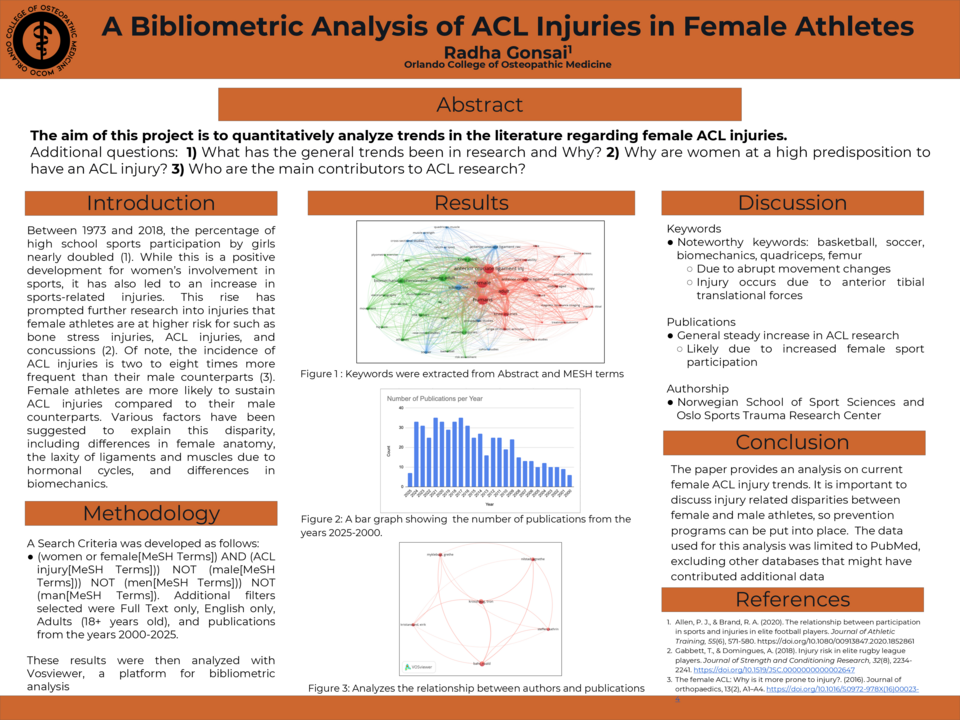 A Search Criteria was developed as follows: (women or female[MeSH Terms]) AND (ACL injury[MeSH Terms])) NOT (male[MeSH Terms])) NOT (men[MeSH Terms])) NOT (man[MeSH Terms]). Additional filters selected were Full Text only, English only, Adults (19+ years old), and publications from the years 2000-2025. These results were then analyzed with Vosviewer, a platform for bibliometric analysis.