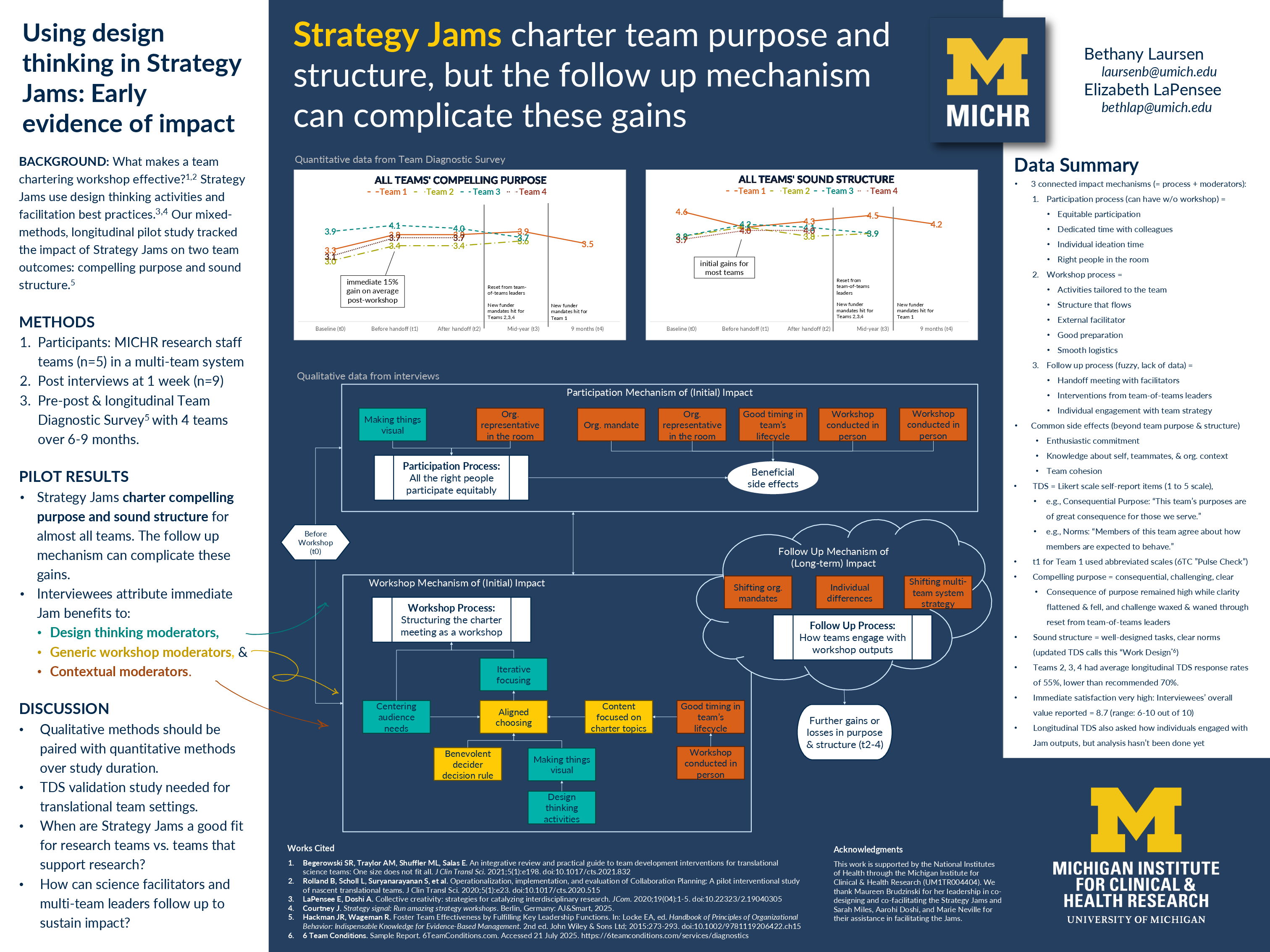 - Brudzinski M, Laursen B. Strategy Jams: Using design thinking to charter teams with compelling purpose and sound structure. Poster presented at: Science of Team Science Conference; July 30, 2024. https://www.cureus.com/posters/2823-strategy-jams-using-design-thinking-to-charter-teams-with-compelling-purpose-and-sound-structure