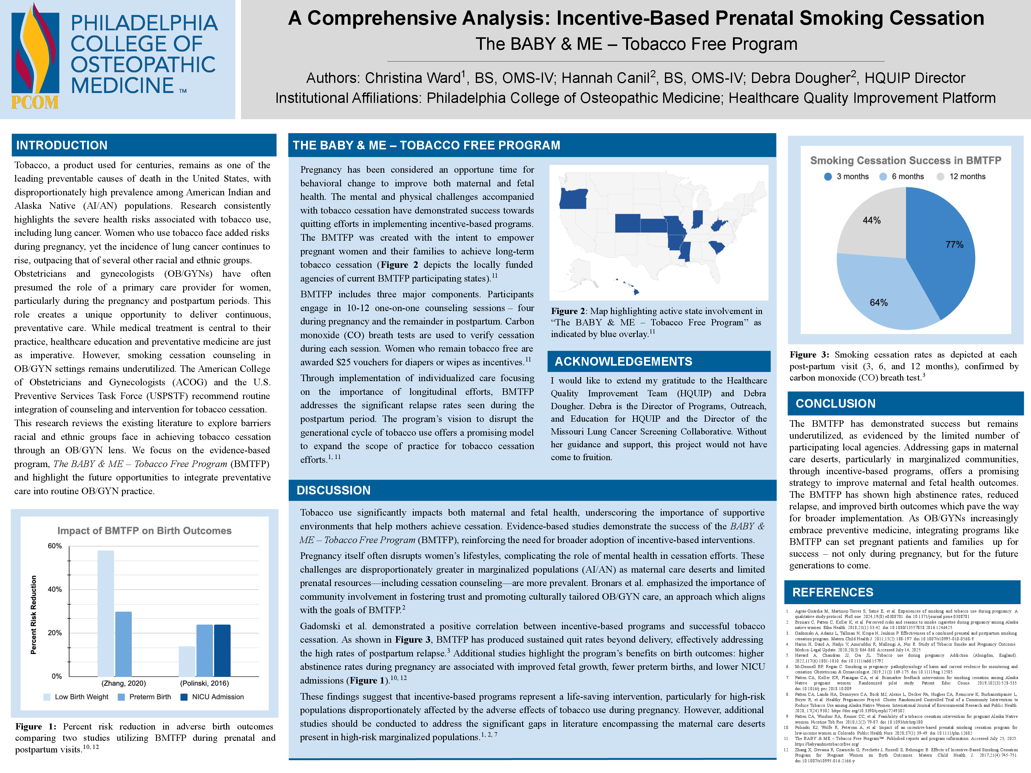 Results: Incentive-based programs like BMTFP have demonstrated sustained quit rates, reduced postpartum relapse, and improved pregnancy outcomes—including fewer growth-restricted neonates, NICU admissions, and preterm births. Community-based, culturally tailored approaches further enhance effectiveness. Together, these findings highlight the potential of incentive-based programs as a life-saving intervention in OB/GYN care.