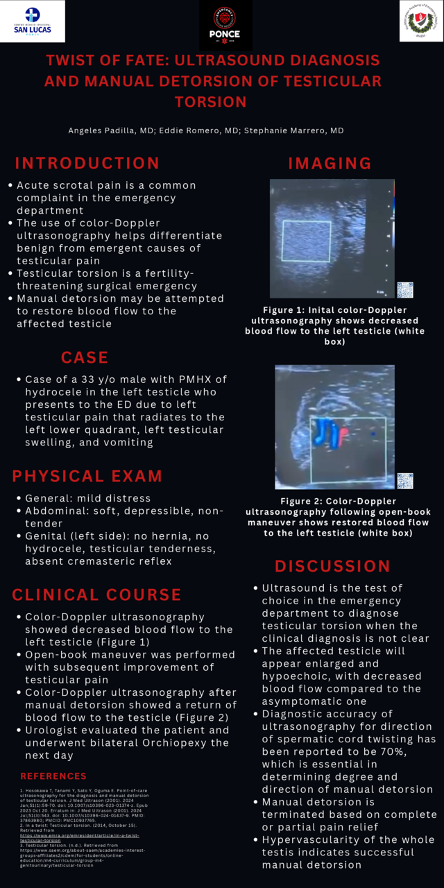 Case of a 33 y/o male with PMHX of hydrocele in the left testicle who presented to the ED due to left testicular pain that radiated to the left lower quadrant, left testicular/scrotal swelling, and vomiting.