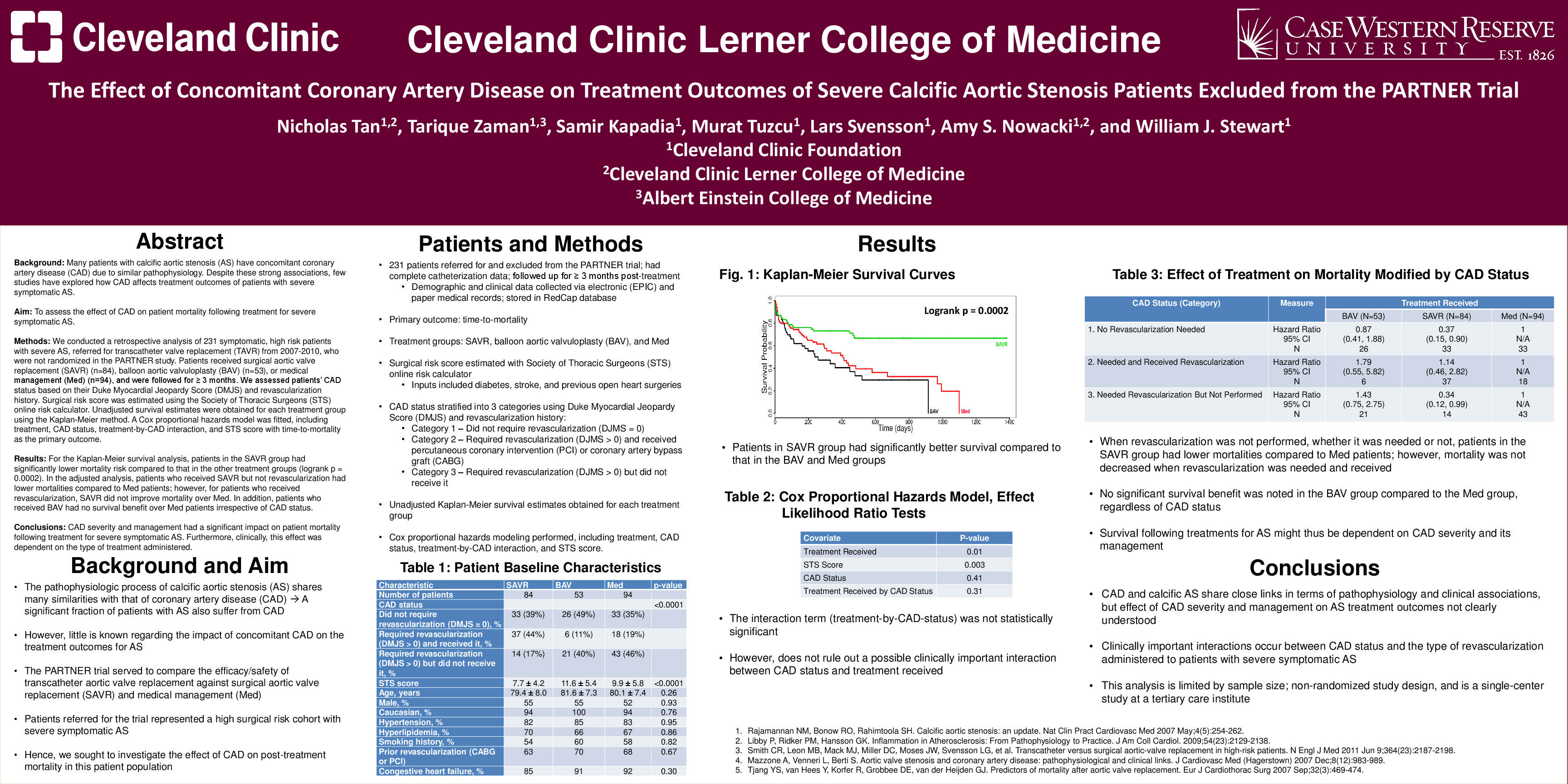 Conclusions: CAD severity and management had a significant impact on patient mortality following treatment for severe symptomatic AS. Furthermore, clinically, this effect was dependent on the type of treatment administered.