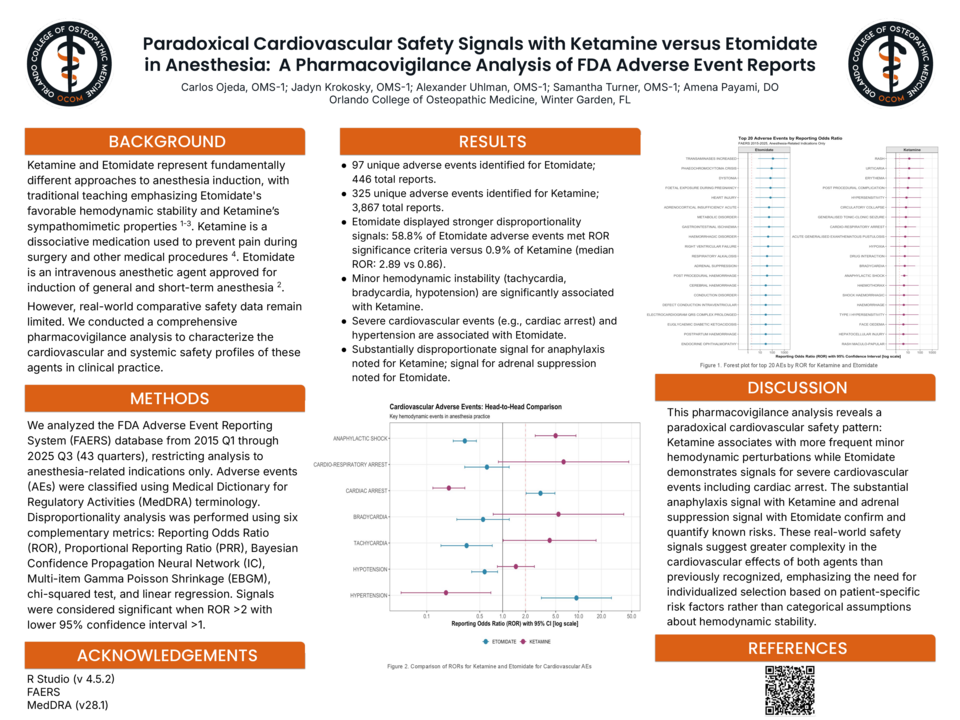 Conclusions: This pharmacovigilance analysis reveals a paradoxical cardiovascular pattern: ketamine associates with frequent minor hemodynamic perturbations while etomidate demonstrates severe cardiovascular event signals including cardiac arrest. The substantial anaphylaxis signal with ketamine and adrenal suppression with etomidate quantify known risks. These findings suggest greater complexity than traditional teaching recognizes, emphasizing individualized agent selection based on patient-specific risk factors.