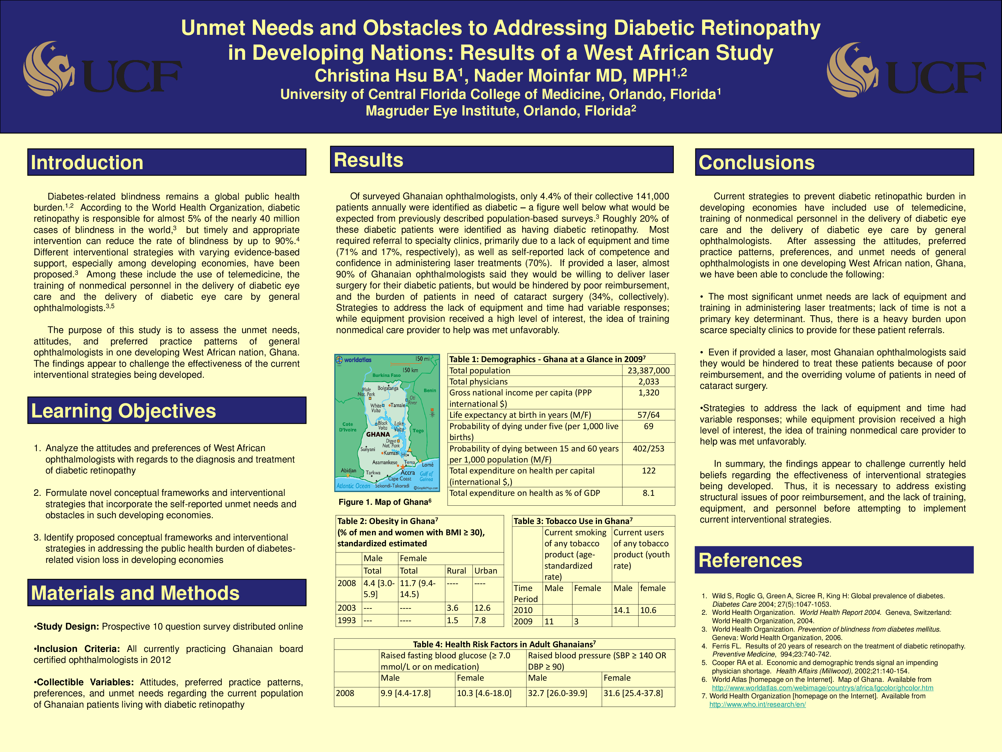 Methods: We surveyed all 46 Ghanaian ophthalmologists in one developing West African nation, Ghana, assessing their attitudes, preferred practice patterns, preferences, and unmet needs.