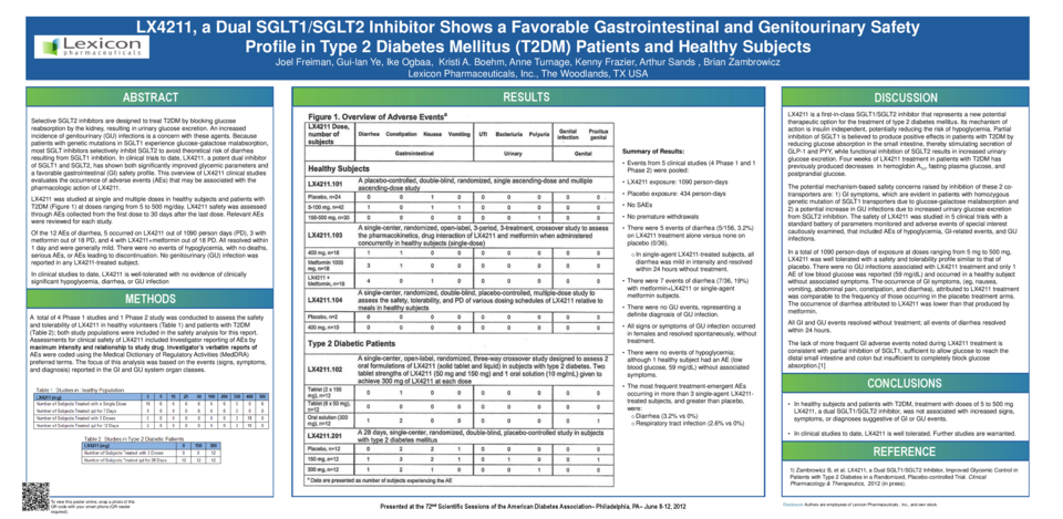 LX4211, a Dual SGLT1/SGLT2 Inhibitor Shows a Favorable Gastrointestinal and Genitourinary Safety Profile in Type 2 Diabetes Mellitus (T2DM) Patients and Healthy Subjects