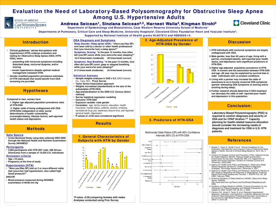Methods: Cross-sectional analysis of a stratified multistage probability adult sample (N=10,526) enrolled in the National Health and Nutrition Examination Survey (NHANES) between 2005 -2008 was obtained. Age-adjusted US population prevalence rates of HTN-OSA and adjusted odd ratios of undiagnosed OSA in the HTN-OSA population were calculated using weighted analysis.