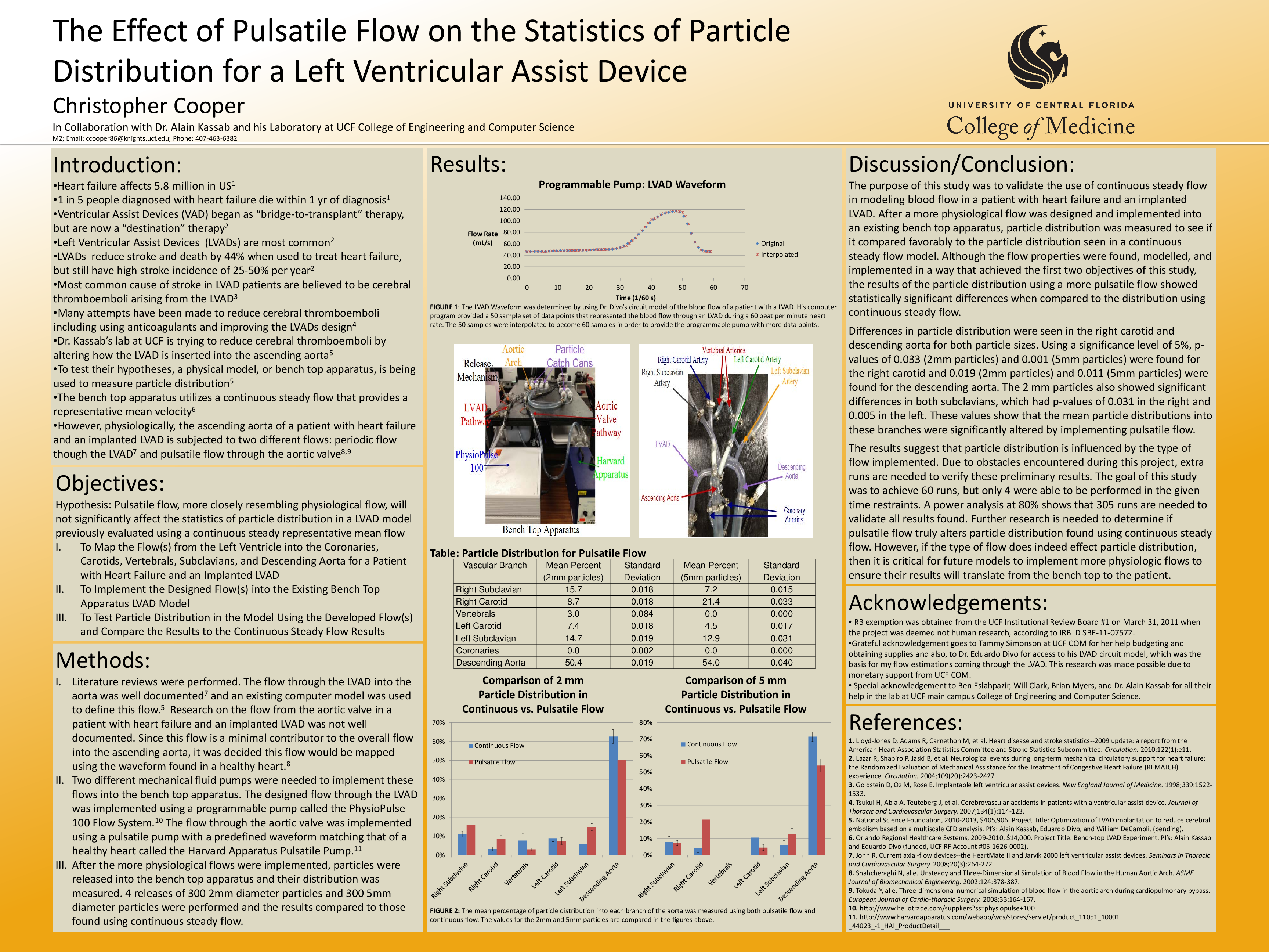 Left Ventricular Assist Devices (LVADs) are often used in the treatment of advanced heart failure. However, there is a high incidence of stroke due to thromboembolisms in the cranial arteries. A current study is being carried out by Dr. Alain Kassab at the UCF main campus to help reduce thromboembolisms flowing from the LVAD into the carotid and vertebral arteries.
