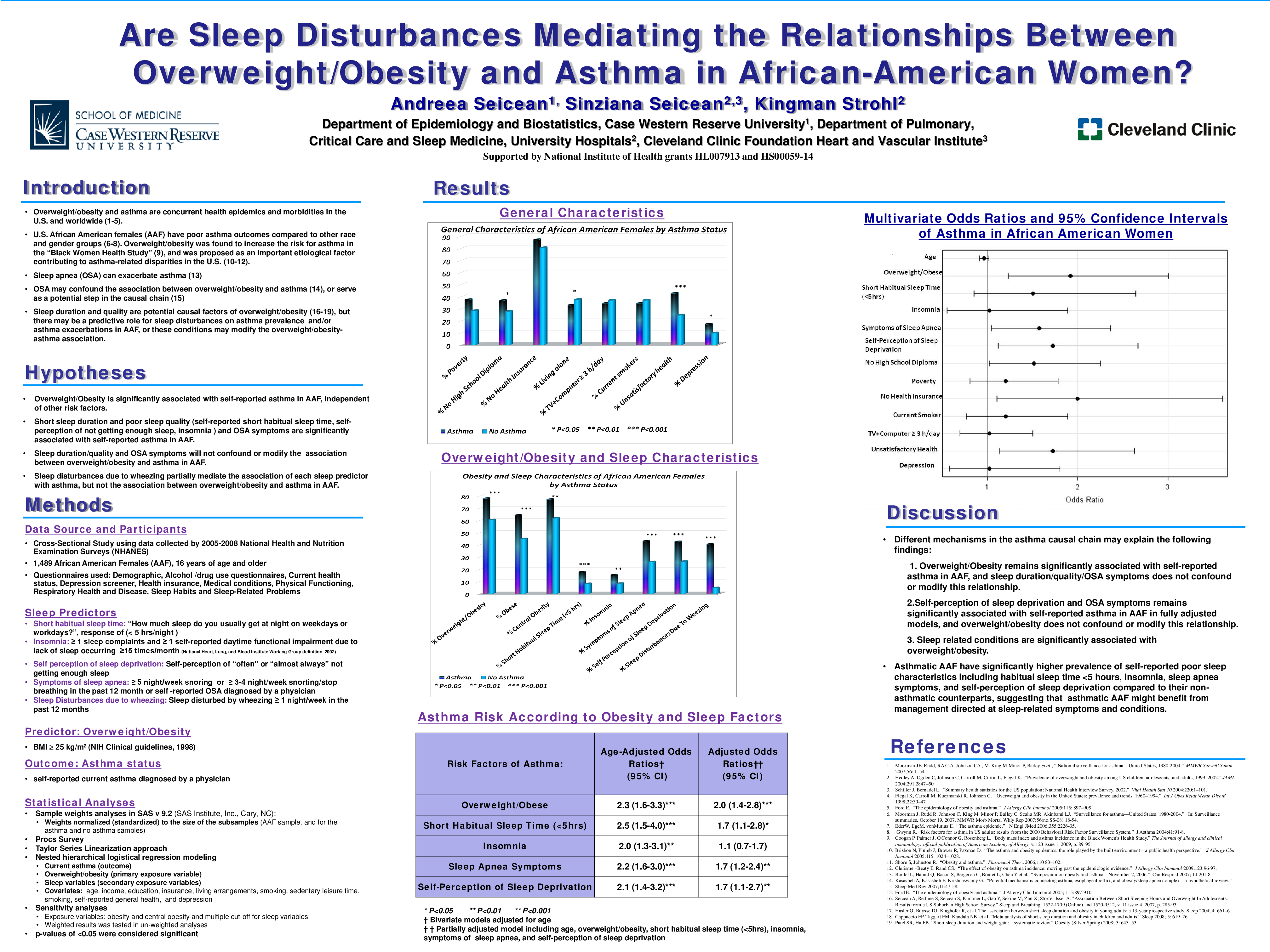 Rationale: African American females (AAF) have high prevalence and poor outcomes for asthma. Overweight/obesity was found to increase the risk for asthma, and obstructive sleep apnea (OSA) has been reported to exacerbate asthma. It is unclear if the coexistence of overweight /obesity and sleep disturbances increase risk of asthma in this population.