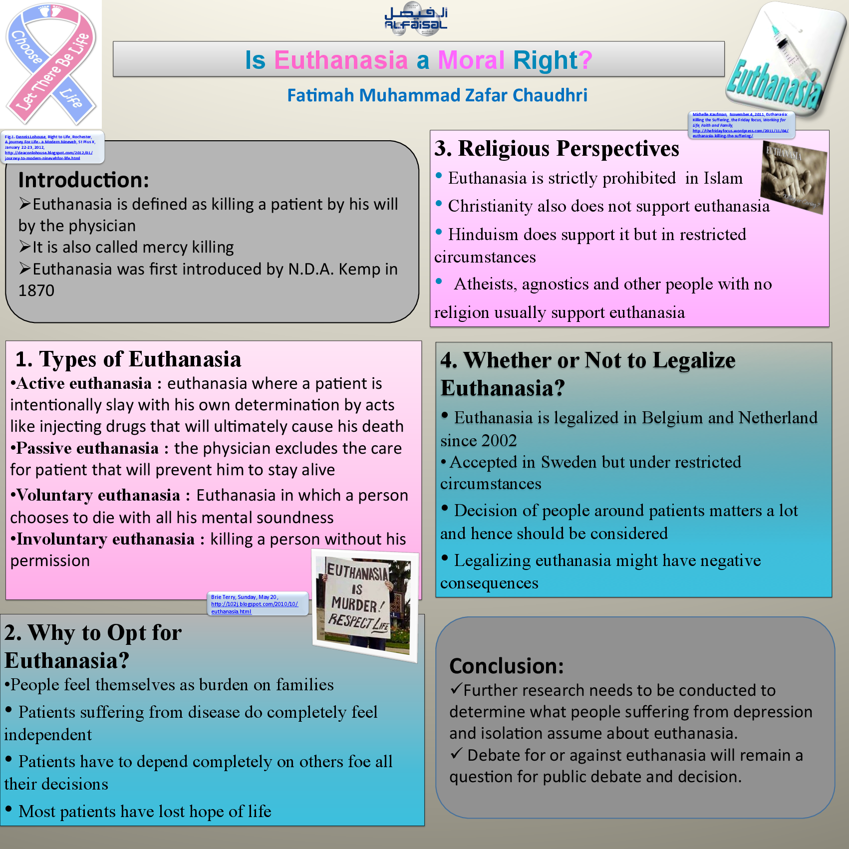 This paper discusses euthanasia and the lukewarm responses to its possible legalization. Different types of euthanasia and procedures of carrying it out are discussed in the paper. Restricted circumstances in which euthanasia is allowed are also clearly mentioned in the paper that follows. The study that follows talks about the view-points of different religions on the topic of whether or not to legalize euthanasia. The opinions of people from several interviews and surveys are considered, some of which are against and some support euthanasia; few are not sure whether or not to support it as they are unaware of its consequences. Overall, six articles were used in the research of this paper and citations were used to provide evidence. Further research needs to be carried out to know why or why not the legalization of euthanasia would mater in a secular country. The need to interview the individuals of those countries where euthanasia is not legalized still persists; however, the public generally supports euthanasia to forego pain despite religious restrictions.