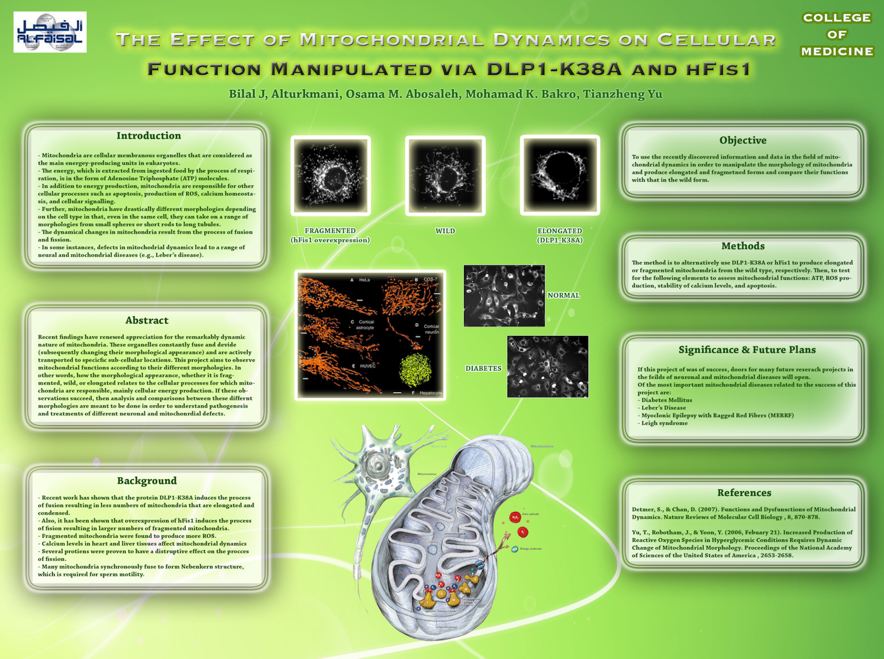 Recent findings have renewed appreciation for the remarkable dynamic nature of mitochondria. These organelles constantly fuse and divide (subsequently changing their morphological appearance) and are actively transported to specific sub-cellular locations. This project aims to observe mitochondrial functions according to their different morphologies. In other words, how the morphological appearance, whether it is fragmented, wild, or elongated, relates to the cellular processes for which mitochondria are responsible, mainly cellular energy production. If these observations succeed, then analysis and comparisons between these different morphologies are meant to be done in order to understand pathogenesis and treatments of different neuronal and mitochondrial defects.