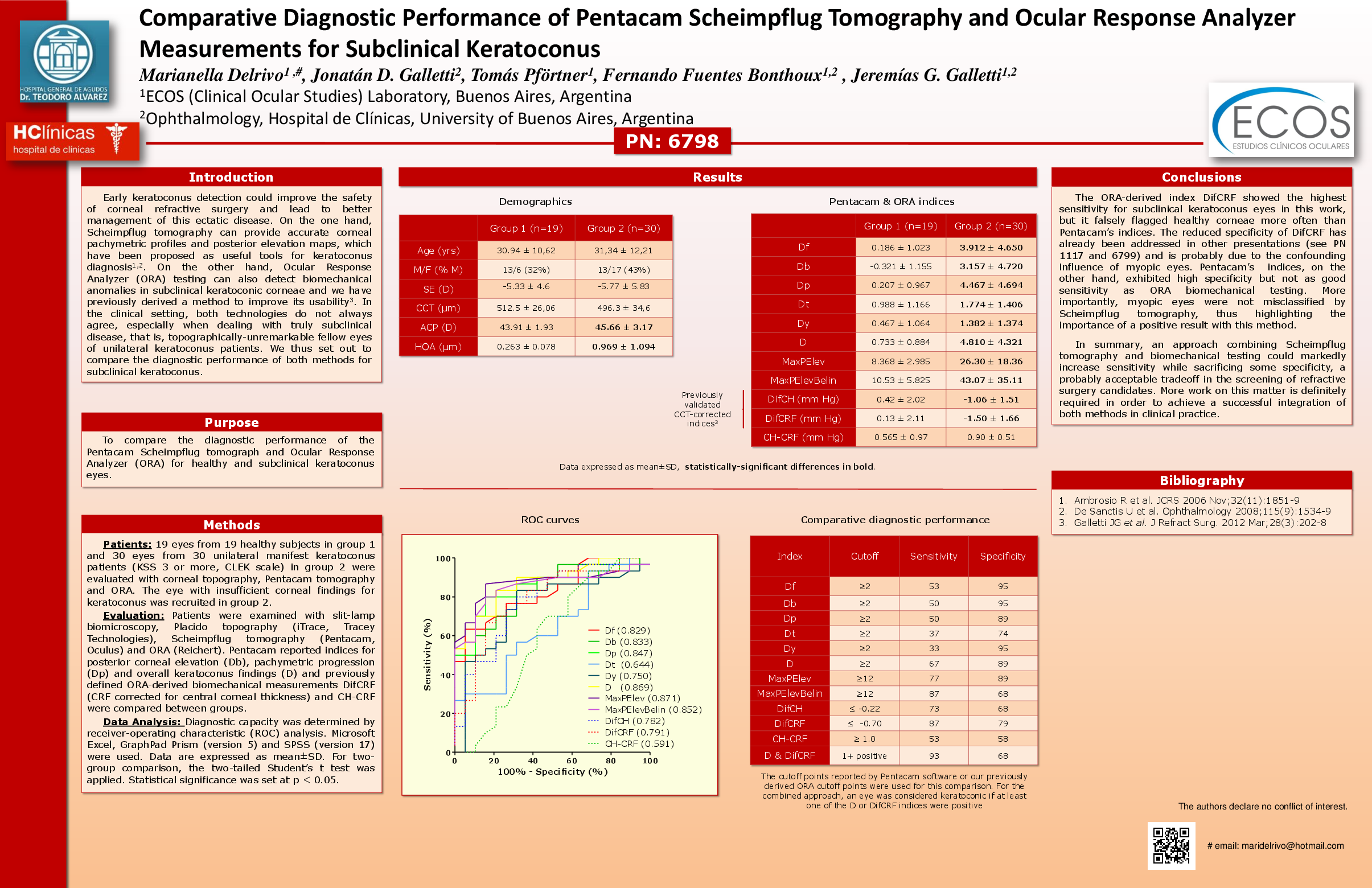 Purpose: To compare the diagnostic capacity of the Pentacam Scheimpflug tomograph and Ocular Response Analyzer (ORA) for healthy and subclinical keratoconus eyes.